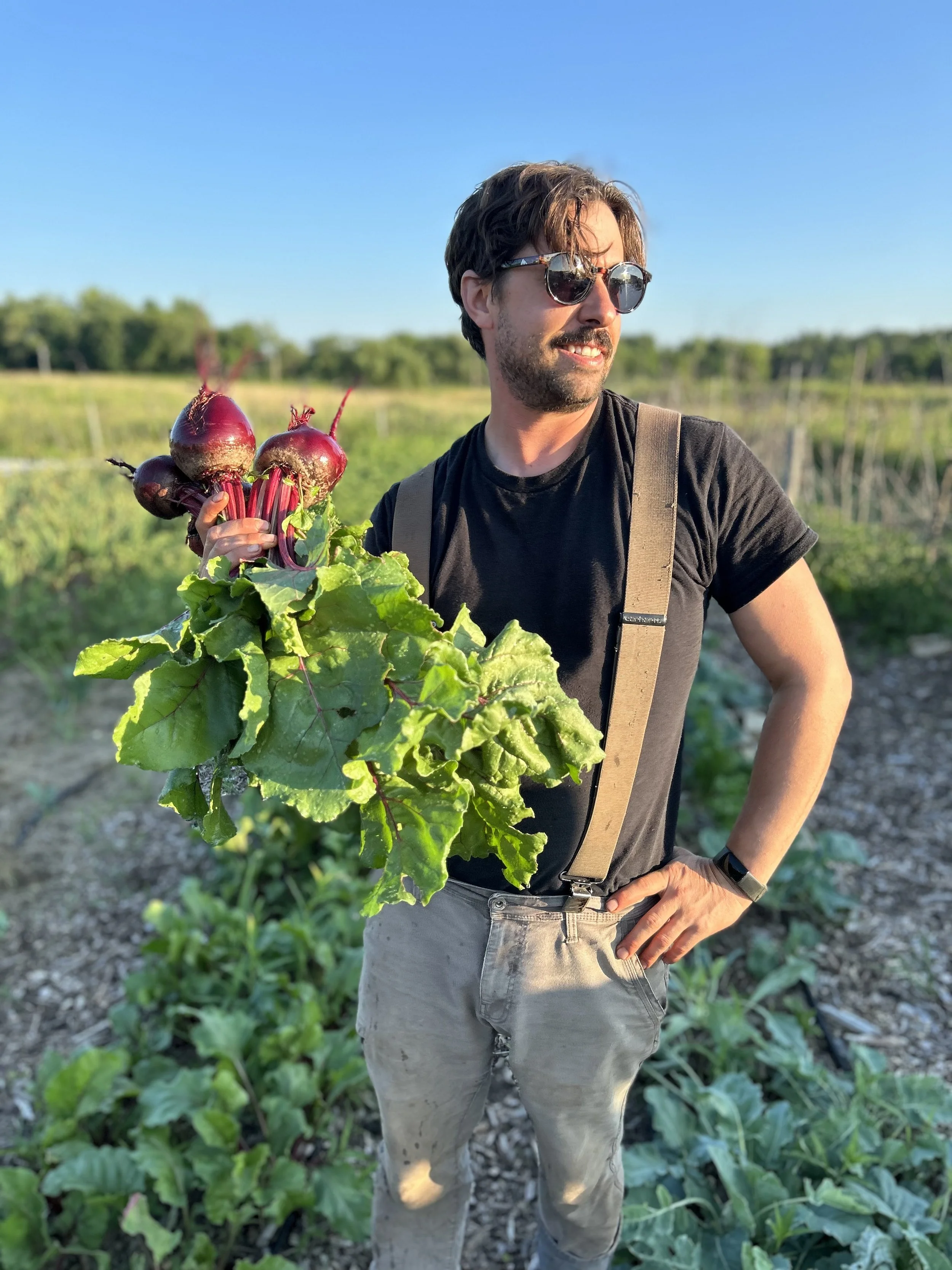 His curiosity led him to study permaculture, regenerative farming practices, and no-till growing methods, shaping the foundation of Prairie’s Edge. A deepening respect for food and its origins took him to culinary school and into professional kitchens, including time spent in the Austin food scene. He returned to the Midwest to focus on expanding the garden and restoring the land, while building collaborative relationships with chefs, restaurants, and others committed to regenerative, ingredient-driven food.