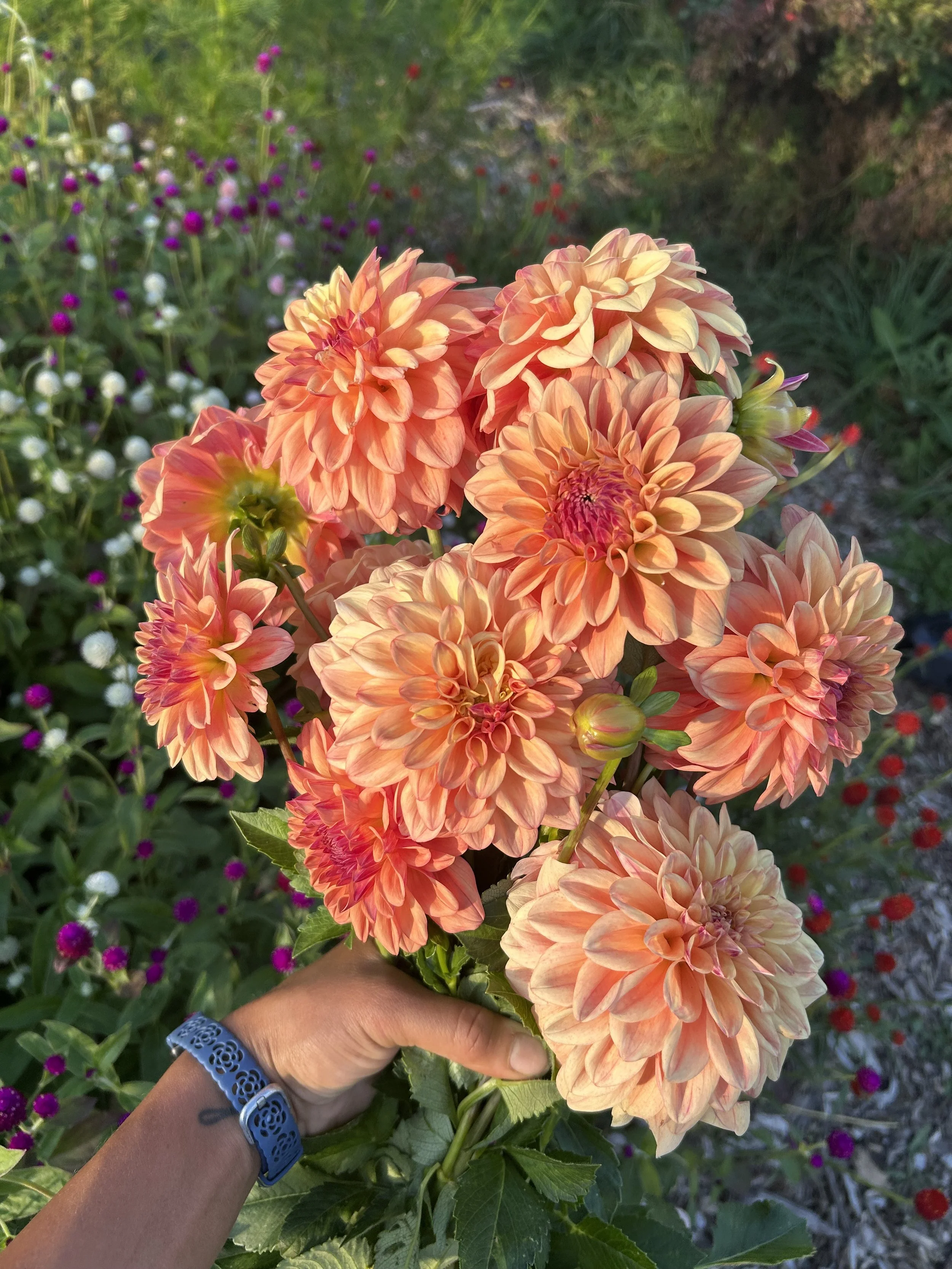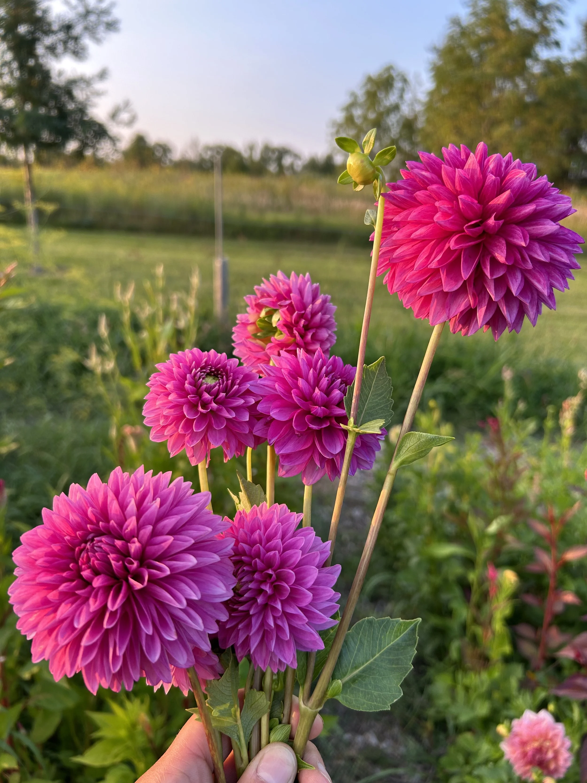 Every season our dahlia patch brings its own magic, and we’re always refining how we document and share each flower’s color, texture, and personality. These are the varieties we rely on for bouquets, pollinator patches, and bold pops of color. A few have now earned permanent spots in our rows. Below, you’ll find bloom details and notes on what makes each one shine here at Prairie’s Edge Garden.