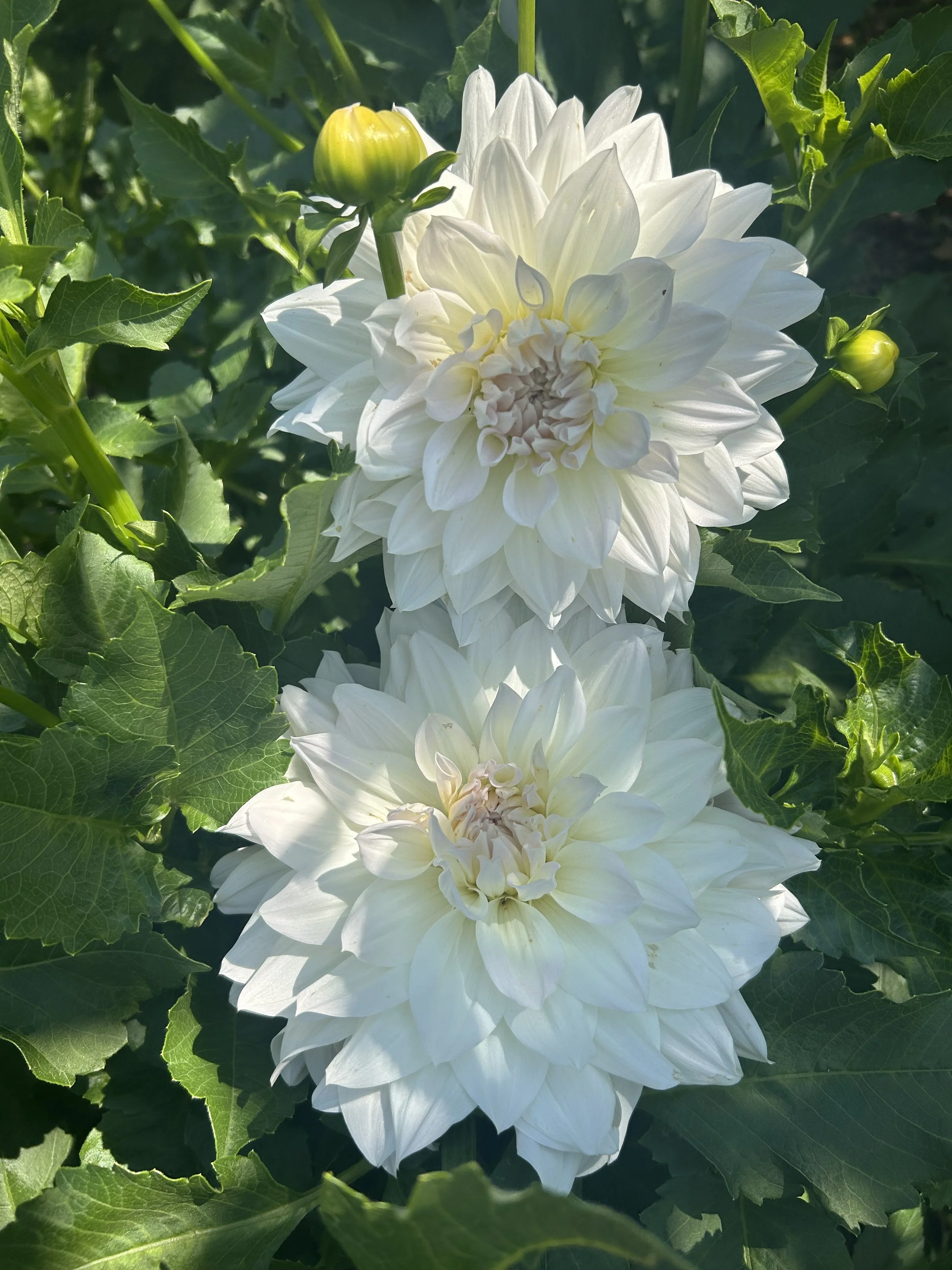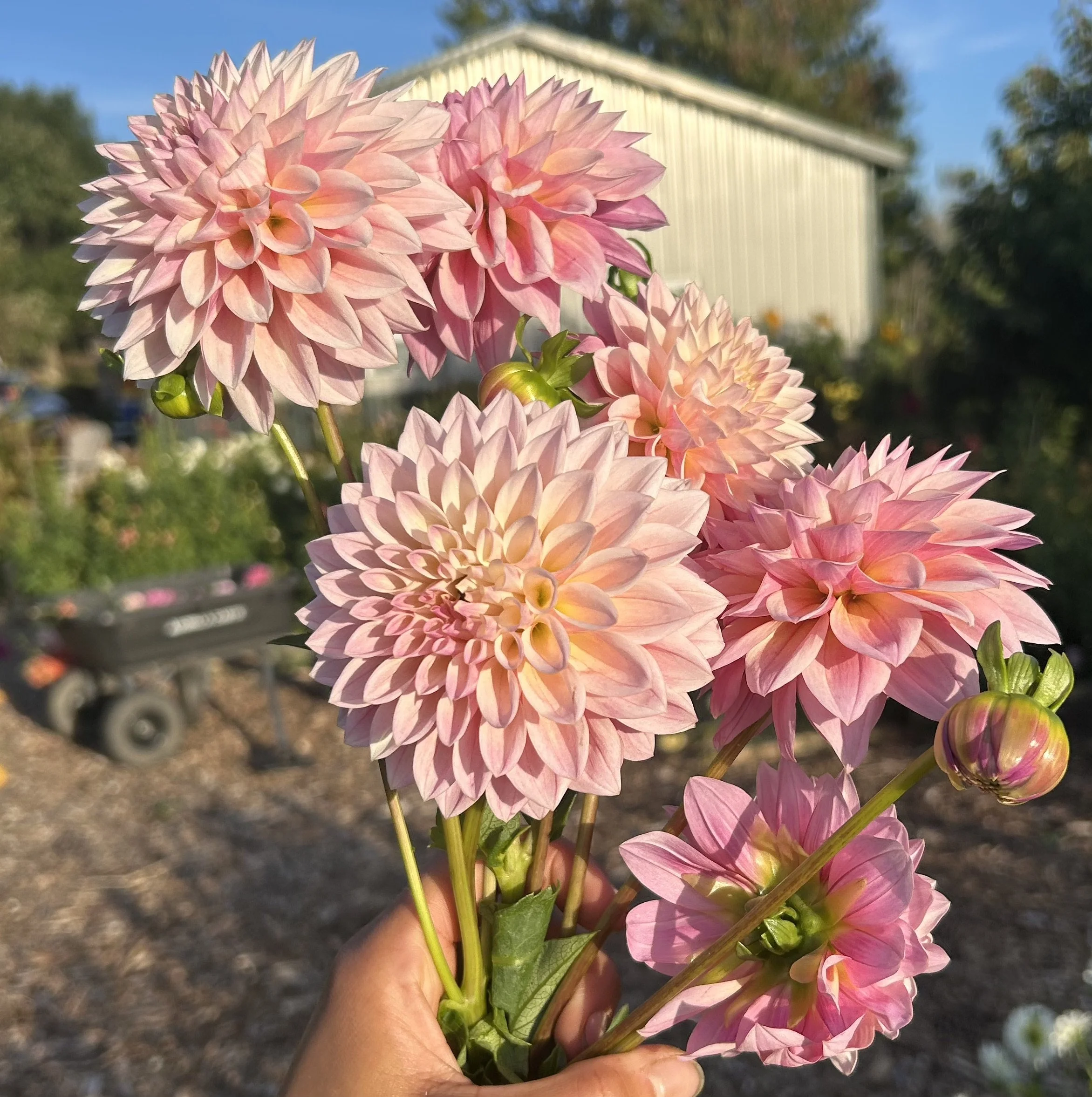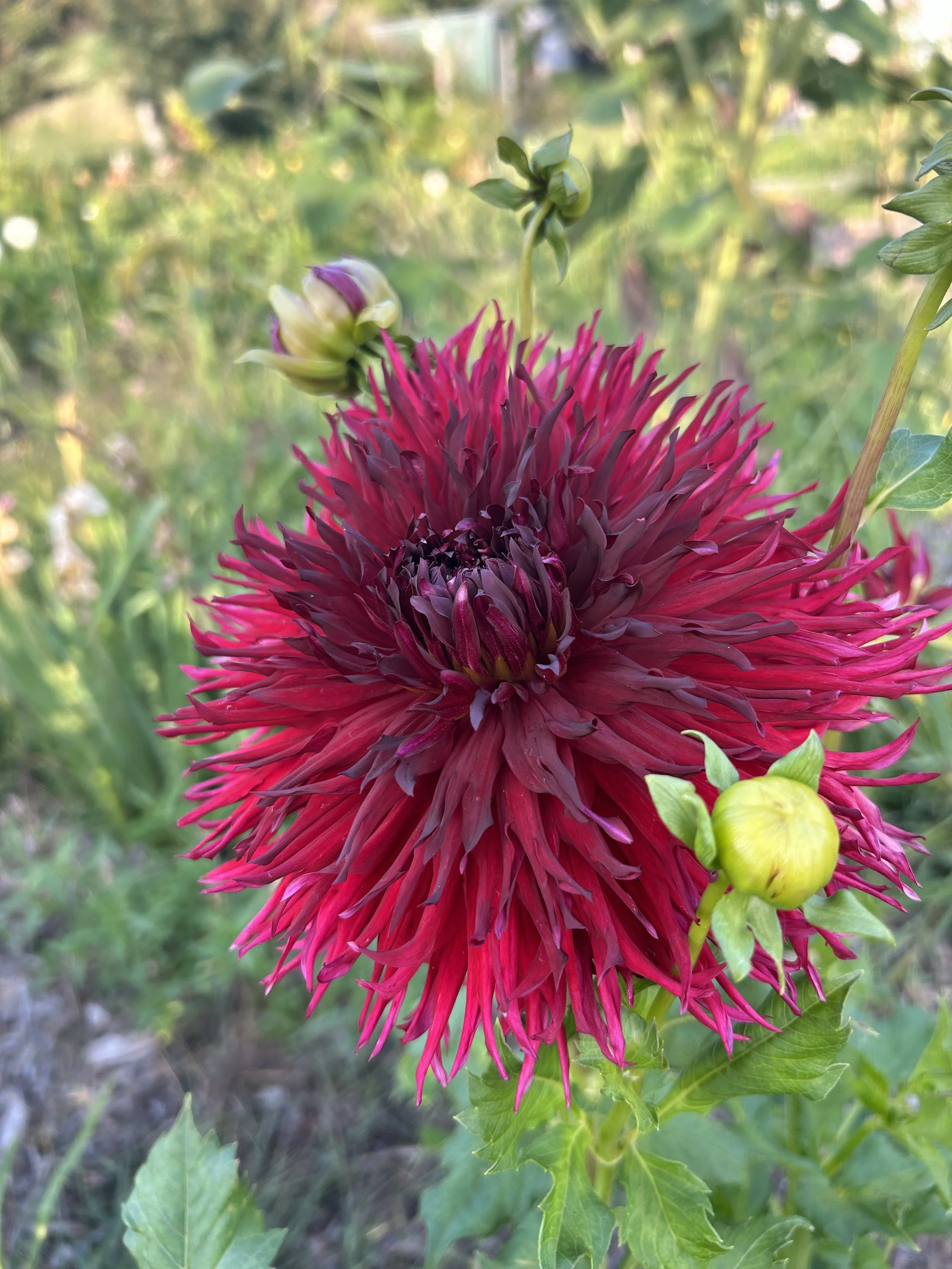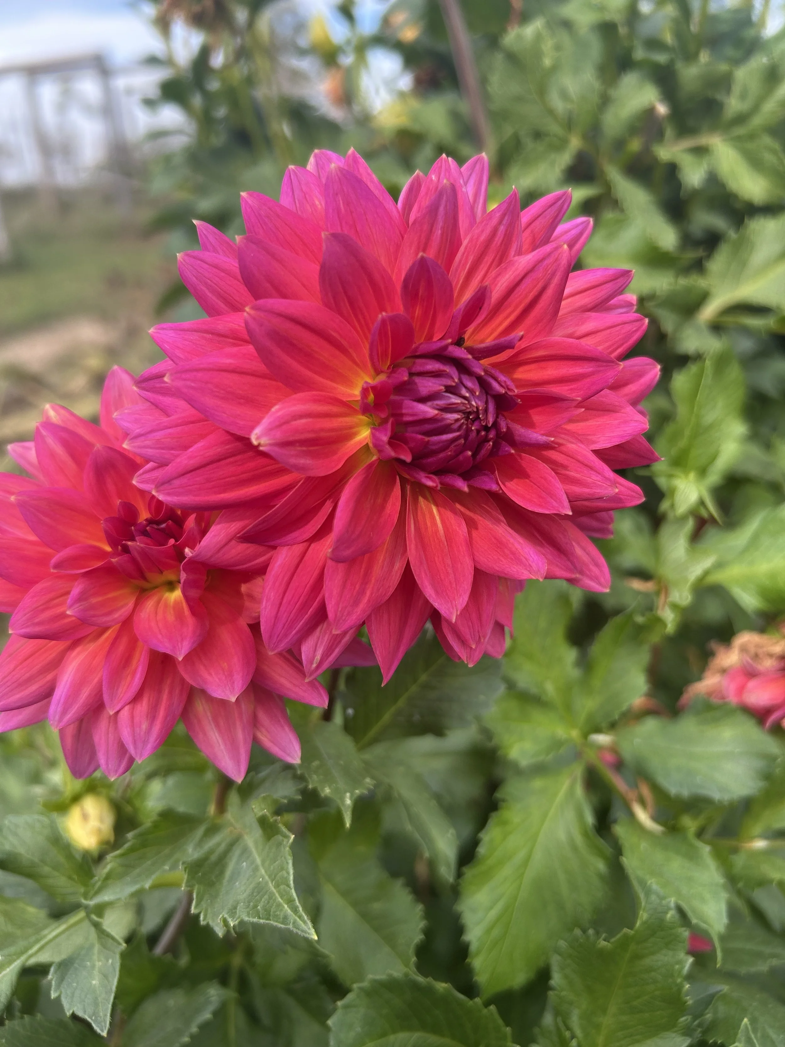 There’s one big, bold dinnerplate dahlia in our garden that continues to stump me. For years I assumed she was ‘Spartacus,’ but the color just isn’t right. She leans more pink-magenta with frosty white streaks on the petal backs. She’s a powerhouse bloomer, easily hitting 6"+ with some flowers easily as large as my face. Around here, we’ve been calling her Raspberry Frost until we can learn her real name.